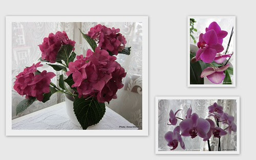 Sain mieheltäni komean hortensian, joka ilahdutti kovasti. Nyt on talossa kolme kukkaa, jotka ovat samaa sävyä, erästä lempiväreistäni. Renessanssin väri minulle.