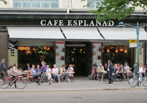 Huomasin, että kahvilan paneloidut seinät loivat kodikkuutta. Nyt on Esplanadin varrella monta kahvilaa, jonne saa mennä lämmittelemään iltakävelyn jälkeen.